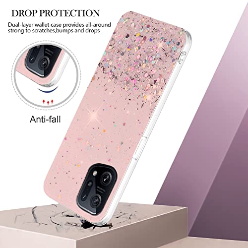 Cover Oppo Find X5 5G Silicone Morbida Glitter, Cover Oppo Find X5 5G Trasparente Glitter Anti Chute, Bling Cover Oppo Find X5 Paillette Liquido Silicone Trasparente (Oppo Find X5 5G, Rosa)