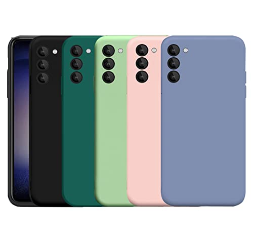 Cover in Silicone per Samsung Galaxy S23 (6,1"), 5 Custodia Morbida in TPU Silicone Opaco Sottile con Protezione della Fotocamera (Nero + Verde Scuro + Verde + Rosa + Azzurro)