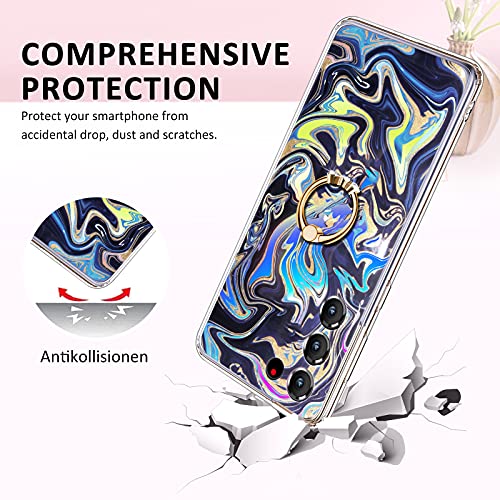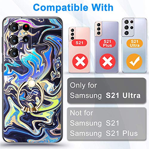 [Custodia personalizzata per Galaxy S21 ultra 5G design colorato] design marmorizzato colorato rende voi e il vostro Samsung Galaxy S21 ultra unico. Custodia sottile per Samsung S21 Ultra 5G, in marmo vivido e non sbiadisce mai. La custodia S21 ultra 5G è antigraffio e resistente alle cadute, è dotata di un supporto ad anello in cristallo 3D fatto a mano con brillantini e strass, che non sarà più monotono.
