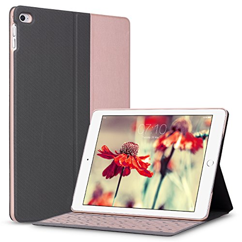 Cover iPad Air 2, ULAK iPad Air 2 Smart Custodia in pelle, Flip Case del basamento [Multi-Stand Angoli di vista] [Auto sveglia / sonno Funzione] con Eclipse modello Cover per Apple iPad Air 2 iPad 6 (Oro Rosa+Nero)