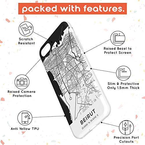 Cover sottile per iPhone 7/8/SE, con mappa di Beirut, Libano, in TPU, resistente e leggera, con viaggio