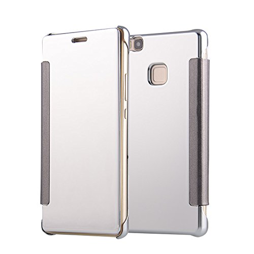 Cover Specchio per Huawei P8 Lite 2015/2016 (Non per P8 Lite 2017), Custodia Plastica Dura per Huawei P8 Lite 2015/2016, ZCRO Flip Cover Lusso per Huawei P8 Lite 2015/2016 Specchio Flip Case a Libro Rigida Hard PC Cover Elegante Mirror Shell Ultraslim Book Caso Copertura Protettiva Antiurto Custodia per Huawei P8 Lite 2015/2016 (Design 1 Argento)