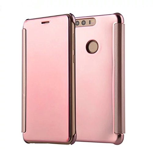 Cover Specchio per Huawei Honor 8, Custodia Plastica Dura per Huawei Honor 8, ZCRO Flip Cover Lusso per Huawei Honor 8 Specchio Flip Case a Libro Rigida Hard PC Cover Elegante Mirror Shell Ultraslim Book Caso Copertura Protettiva Antiurto Custodia per Huawei Honor 8 (Design 1 Oro Rosa)