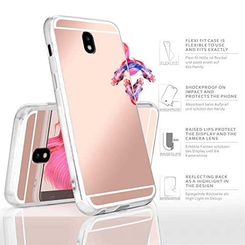 MoEx Cover a Specchio Silicone Compatibile con Samsung Galaxy J5 (2017) | Protegge + specchietto, Rosa Dorato