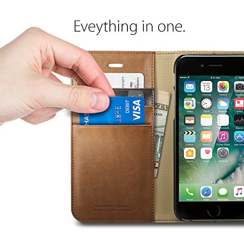 Cover Spigen per iPhone 7 wallet in pelle marrone