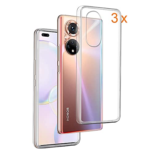 REY Pack 3X Cover in Gel TPU Trasparente per Honor 50 PRO, Ultra Sottile 0,33 mm, Morbido Flessibile, Custodia Silicone