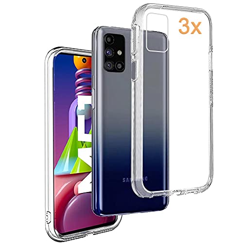 REY Pack 3X Cover in Gel TPU Trasparente per Samsung Galaxy M51, Ultra Sottile 0,33 mm, Morbido Flessibile, Custodia Silicone