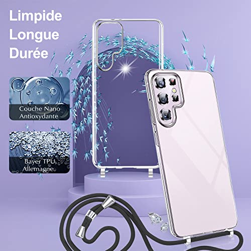 Cover trasparente per Samsung S23 Ultra Cordone,Slim Slim Crystal Clear Custodia per Samsung Galaxy S23 Ultra Case Anti-Ingiallimento con Cordino Portatile, Antiurto Cover S23 Ultra Regolabile Collana