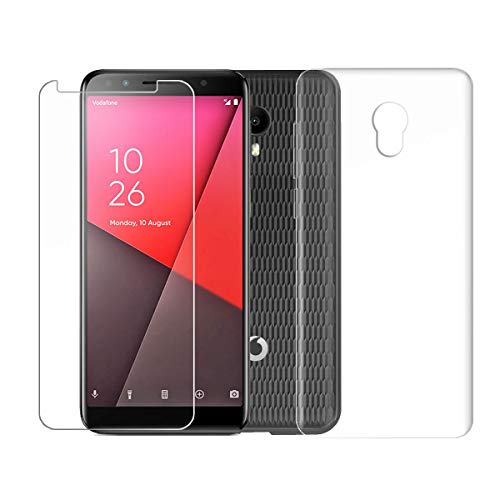QFSM Cover Trasparente Silicone Custodia Vodafone Smart N9 Lite (5.34") Étui Silicone Transparent Housse + 1 Pack Vetro Temperato Pellicola Vetro per Vodafone Smart N9 Lite (5.34")