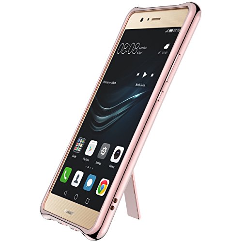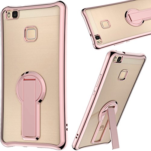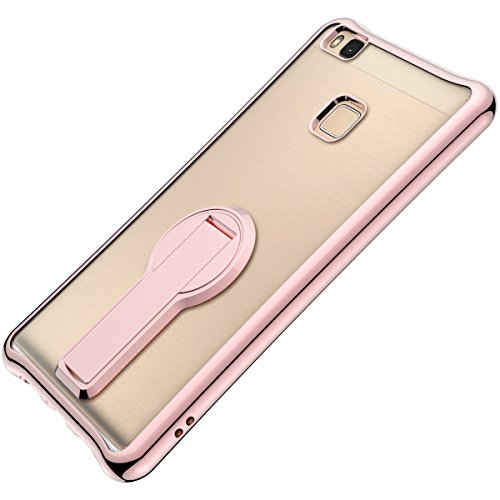 Cover Trasparente Silicone per Huawei P9 Lite, GrandEver taffa Girevole Funzione Morbido TPU Custodia con Placcatura Edge, 360 Degree Clear Chiar Case Flexible Soft Protettivo Antiurto Durable Copertura - Rose Gold