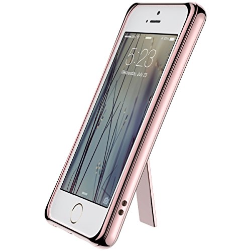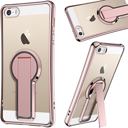 Cover Trasparente Silicone per iPhone 5/5S/SE, GrandEver taffa Girevole Funzione Morbido TPU Custodia con Placcatura Edge, 360 Degree Clear Chiar Case Flexible Soft Protettivo Antiurto Durable Copertura - Rose Gold
