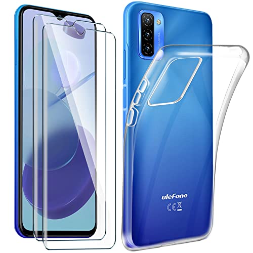 HYMY Cover per Ulefone Note 12P (6.82") + 2X Pellicola Protettiva - Morbida Trasparente Silicone Bumper Case TPU Protettivo Copertura Custodia 9H Vetro temperato