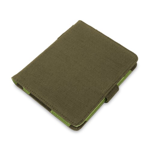 Cover-Up - Custodia in Canapa Naturale per Kobo Aura (6") eReader (Stile Libro) - Colore Verde Cachi