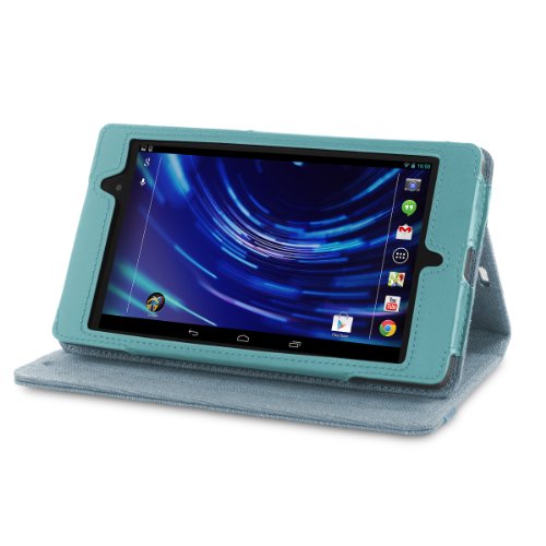 Cover-Up - Custodia in Canapa Naturale per Google Nexus 7 2 FHD (2013) (7") Tablet (con Supporto) - Colore Azzurro Egeo
