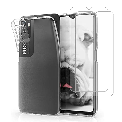 Cover per Xiaomi Poco M3 PRO 5G/Redmi Note 10 5G + [2 Pack] Vetro Temperato, Weideworld Ultra Sottile Antiurto Morbido Antiurto Silicone TPU Custodia Protettiva Cover, Trasparente
