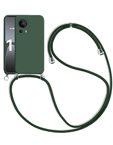 Cover per Xiaomi 13 Lite (6.55"), Corda Custodia in Silicone con Regolabile Cordino, Silicone Case Cordini Custodia Cellulare da Collo, Scuro Verde
