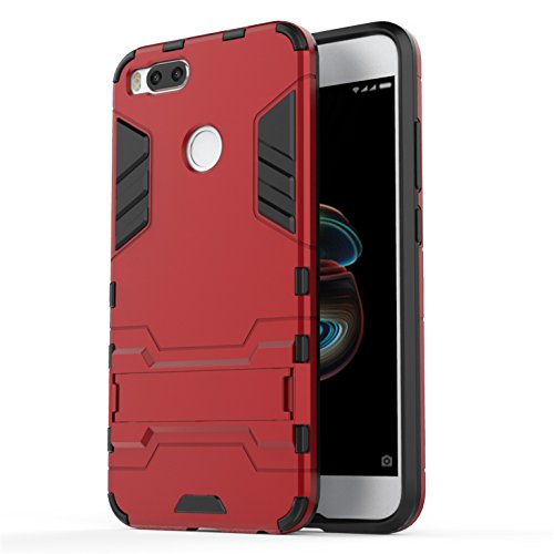 Cover per Xiaomi Mi 5X / Xiaomi Mi A1, Custodia 2in1 Dual Layer Ibrida Morbido TPU 360° Full Body Protettiva Bumper, Rigida Plastica Armor Antiurto Protettiva Cover, Rosso