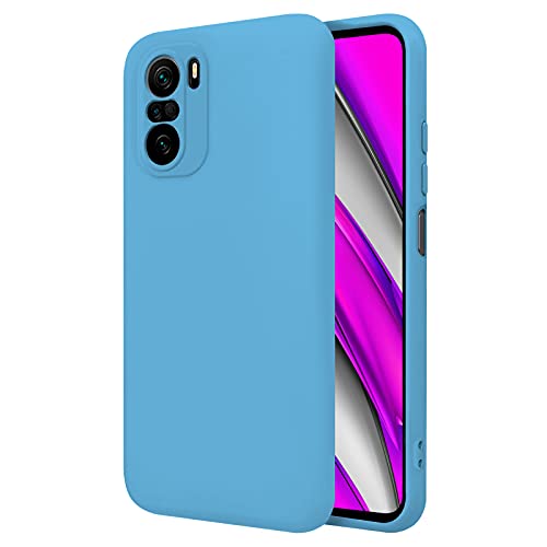 TBOC Cover per Xiaomi Poco F3 [6.67"] Custodia Rigida [Azzurro] Silicone Liquido Premium [Sensazione Morbida] Fodera Interna Microfibra [Protegge Fotocamera] Antiscivole Resistente Sporco Graffi