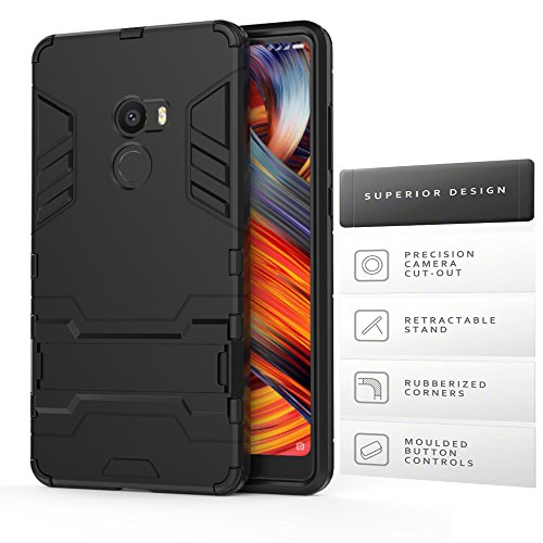 Cover Xiaomi Mi Mix 2, GOGME [Tough Armor Series] Robusto Pannello Posteriore PC Antigraffio + Paraurti Antiurto TPU+ Pratico cavalletto, Nero