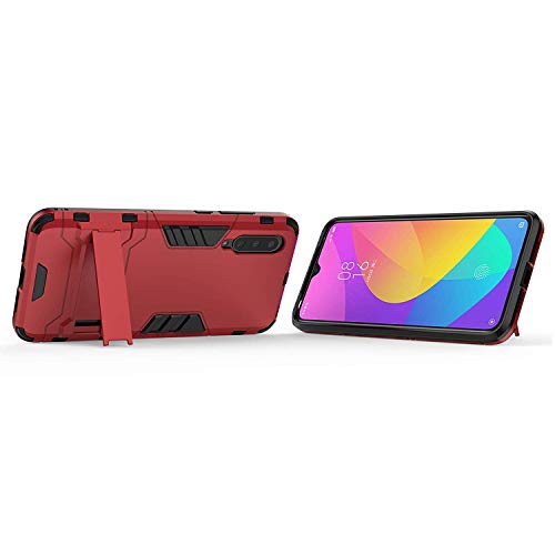 Cover per Xiaomi Mi 9 Lite/Mi A3 Lite/Mi CC9 (6,39 Pollici) 2 in 1 Hybrid Dual Layer Completamente Shock Resistente Armour con Cavalletto Funzione Custodia (Rosso)