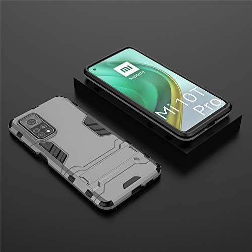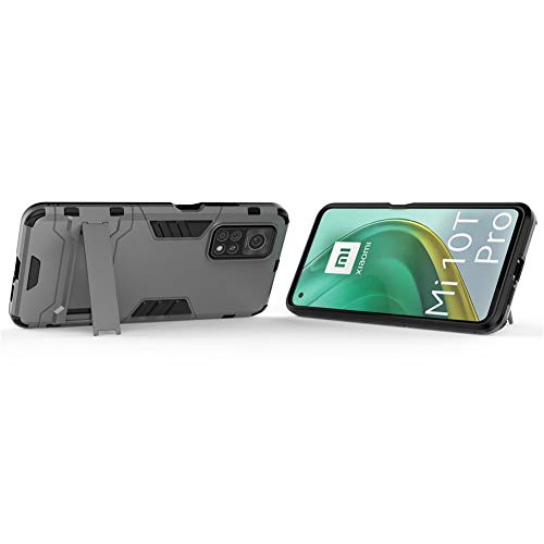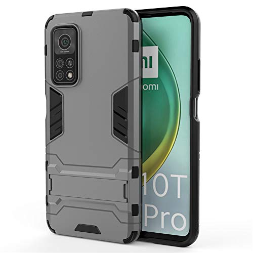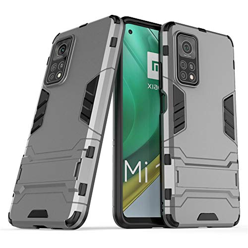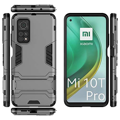 Cover per Xiaomi Mi 10T 5G / Mi10T Pro 5G (6,67 Pollici) 2 in 1 Hybrid Dual Layer Completamente Shock Resistente Armour con Cavalletto Funzione Custodia (Grigio)
