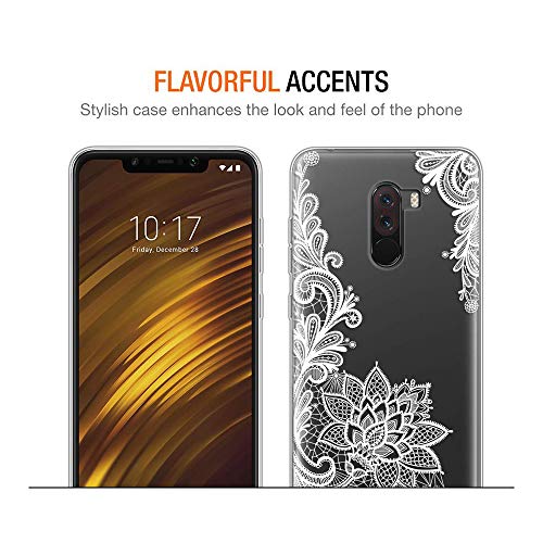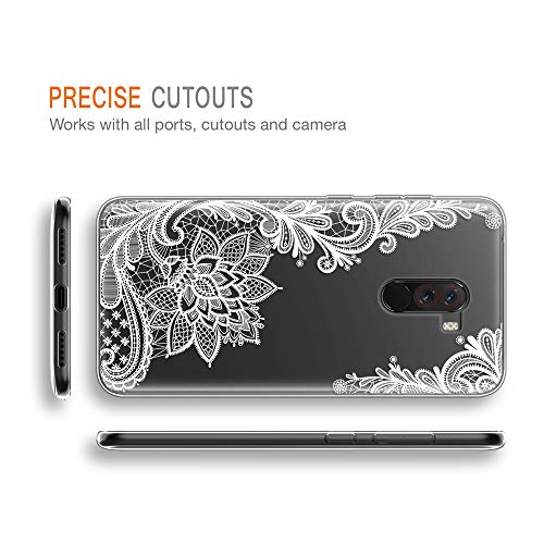 Cover Xiaomi Pocophone F1, Eouine Custodia Cover Silicone Trasparente con Disegni Ultra Slim TPU Morbido Antiurto 3D Cartoon Bumper Case Protettiva per Xiaomi Pocophone F1 Smartphone (Fiore Bianco)