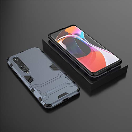 Cover per Xiaomi Mi 10 5G (6,67 Pollici) 2 in 1 Hybrid Dual Layer Completamente Shock Resistente Armour con Cavalletto Funzione Custodia (Blu Nero)
