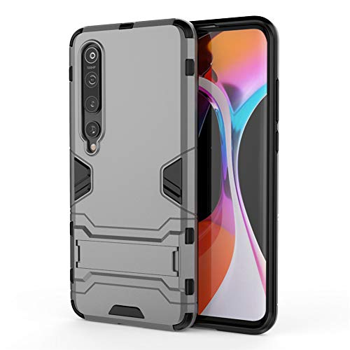 Cover per Xiaomi Mi 10 5G (6,67 Pollici) 2 in 1 Hybrid Dual Layer Completamente Shock Resistente Armour con Cavalletto Funzione Custodia (Grigio)