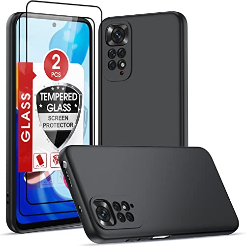 LeYi per Cover Xiaomi Redmi Note 11/Note 11S Custodia con 2 Pack Vetro Vetro Temperato, Silicone TPU Antiurto Protezione Corpo Tocco Morbido Setoso Protettiva Custodie per Redmi Note 11 Nero