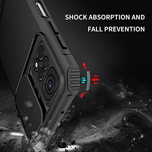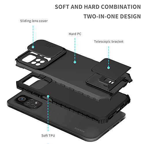 Cover per Xiaomi Redmi Note 11 4G/Redmi Note 11S, Robusta Hard PC Back Cover e Silicone TPU Bumper AntiGraffio Antiurto Antiscivolo Case Custodia con Scorrevole Protezione Fotocamera e Supporto - Nero