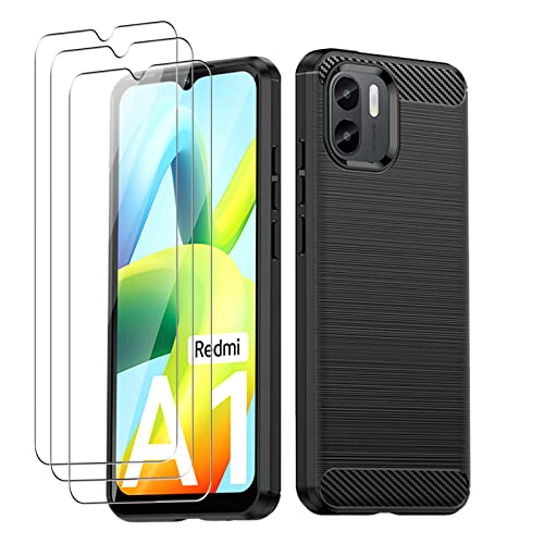 Cover per Xiaomi Redmi A1/Redmi A2 + [3 Pezzi] Vetro Temperato, Weideworld Custodia Robusta per Armature Cover in Silicone Morbido e Sottile per Redmi A1/Redmi A2, Nero