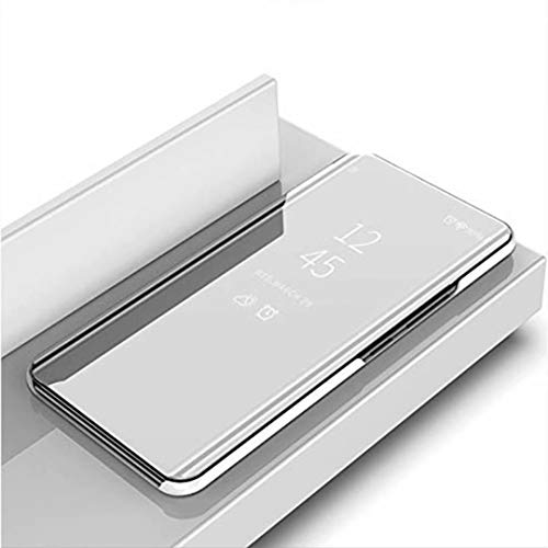 HUUH Cover per Xiaomi Redmi Note 8T,Custodia per Cellulare Specchio,Realizzata in Pelle Sintetica di Alta qualità e PC Placcato, Staffa Pieghevole, Elegante e Unica Custodie.(Argento)