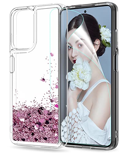 LeYi per Cover Xiaomi Redmi 10 4G (Non per 5G) Custodia Glitter con HD Pellicola Protettiva, Brillantini Silicone Sabbie Mobili Antiurto Bumper TPU Case Donna Ragazza per Xiaomi Redmi 10 Rosa