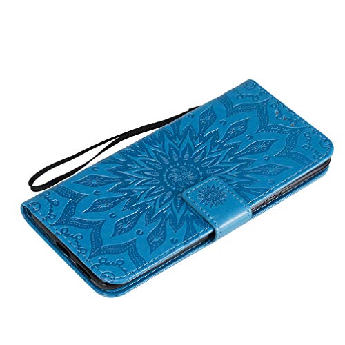 MHHQ Cover per Xiaomi Redmi 9C Custodia di Pelle Case Flip Portafoglio Retro Libretto Magnetico Protettiva Non Graffi con Funzione Supporto Bumper Fiore Girasole per Xiaomi Redmi 9C - Blu