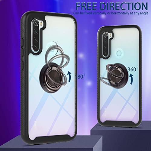 Cover per Xiaomi Redmi Note 8 2021 & 2019, con Magnetica Anello Ring Supporto, Custodia 2in1 Dual Layer Ibrida Morbido 360° Full Body Protettiva Bumper e Armor Antiurto Back