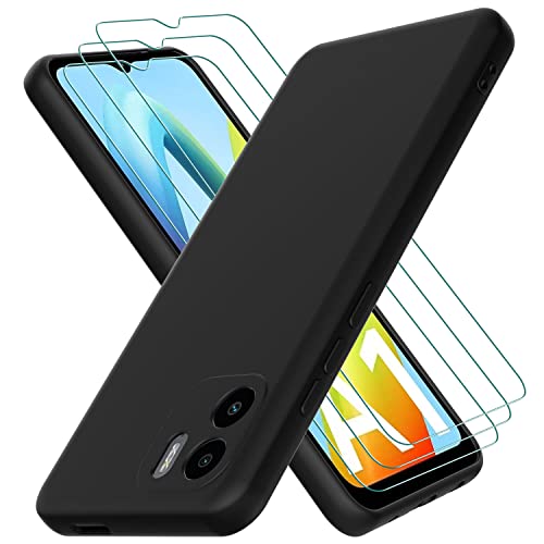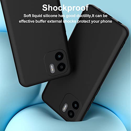 Cover per Xiaomi Redmi A2 / Redmi A1 con 3 Pezzi Pellicola Vetro Temperato, Custodia in Morbida Silicone Liquido, Sottile e Antiurto con Rivestimento in Microfibra AntiGraffio, Nero