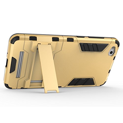 Cover per Xiaomi Redmi 4A (5 Pollici) 2 in 1 Hybrid Dual Layer Completamente Shock Resistente Armour con Cavalletto Funzione Custodia (Golden)
