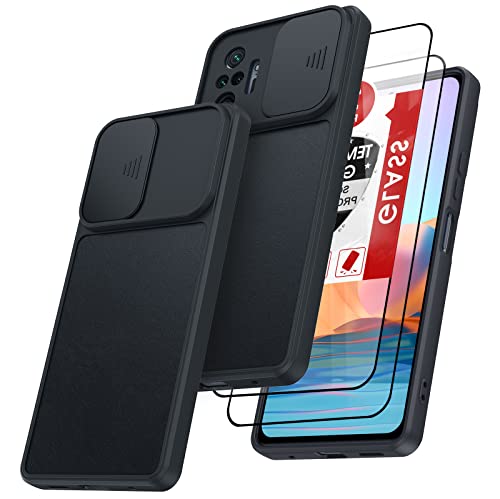 LeYi Cover per Xiaomi Redmi Note 10 PRO/PRO Max e 2*Pellicola Protettiva Vetro Temperato, Slidable Fotocamera Protezione Custodia Antiurto Ultra Sottile Silicone Custodie per Note 10 PRO Nero