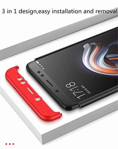 Cover pour Xiaomi Redmi Note 5 Rosso, Custodia rigida per PC corpo Cover pour protettiva Ultra sottile Antigraffio Paraurti Matte Phone Case 3 in 1 DESCHE-Rosso