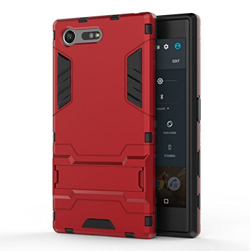 Cover per Sony Xperia X Compact (4,6 Pollici) 2 in 1 Hybrid Dual Layer Completamente Shock Resistente Armour con Cavalletto Funzione Custodia (Rosso)