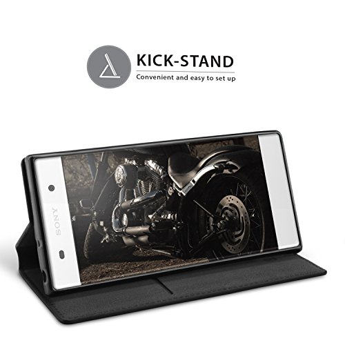 BEZ Cover Xperia XA1, Custodia Compatibile per Sony Xperia XA1, Protettiva Portafoglio Flip Case in Libro Pelle con Porta Carta di Credito, Kick Stand, Chiusura Magnetica, Nero
