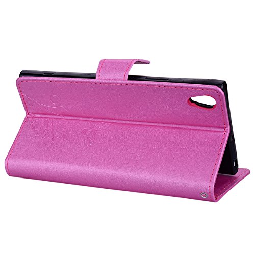 Cover per Sony Xperia L1, Custodia in Pelle Specchio per Sony Xperia L1, Flip Case Portafoglio Bella Farfalla Fiori Cover per Sony Xperia L1, ZCRO Libro Supporto Stand Silicone Morbida Back Cover Caso Pelle Cuoio con Specchio Mirror Porta Carte Protettiva Elegante Copertura Antiurto Completa Custodia Ultra Slim Sottile Wallet Case Moda Bellissime Shell Custodia per Sony Xperia L1 (Rosa)