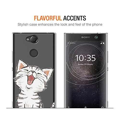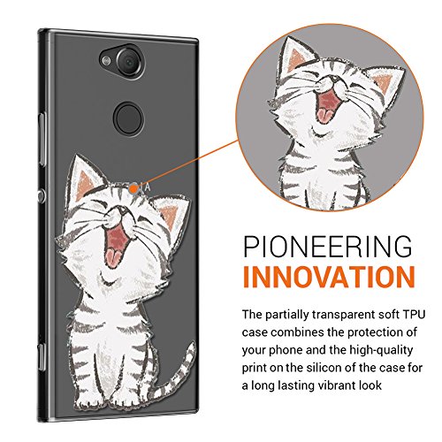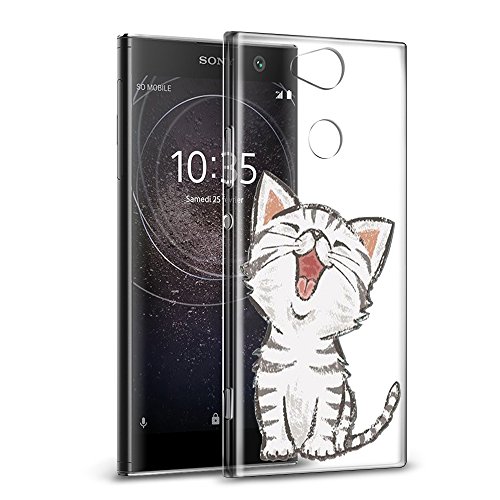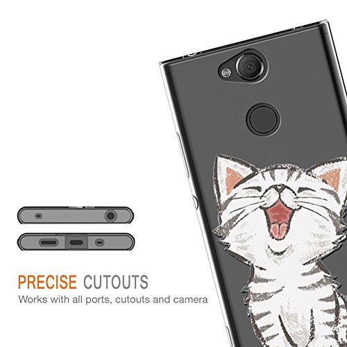 Cover Sony Xperia XA2, Eouine Custodia Cover Silicone Trasparente con Disegni [Ultra Slim] TPU Morbido Antiurto 3d Cartoon Bumper Case Protettiva per Sony Xperia XA2 5.2" Smartphone (Gatto Sorridente)