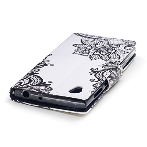 COZY HUT Cover per Sony Xperia L1, [Kickstand] [Slot per Schede] [Chiusura Magnetica] Flip Caso in PU Pelle Premium Portafoglio Custodia per Sony Xperia L1 - Overlord fiori