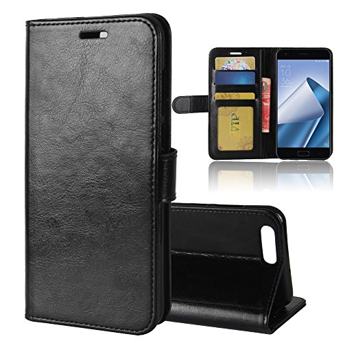Cover Asus Zenfone 4 ZE554KL Custodia portafoglio,GOGME[serie portafogli] Bella cover in ecopelle di ottima qualità morbida,Una bella custodia, finta pelle morbida, elegante e robusta.(nero)