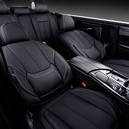 Coverado Coprisedili Anteriori e Posteriori 4 Pezzi, Set completo Protezioni Sedili auto Impermeabili Pelle NAPPA,Accessori Universali Auto Adatti alla Maggior Parte Delle Berline SUV Pick-up,Nero