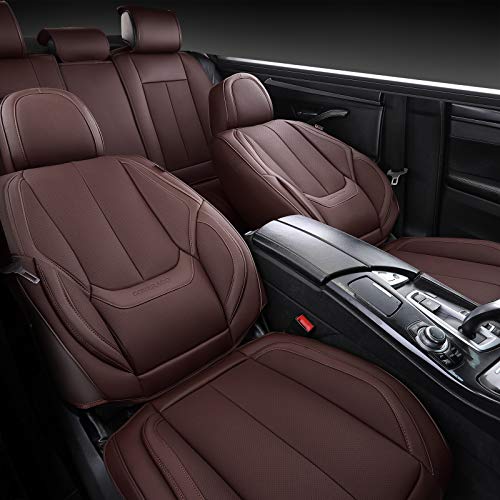 Coverado Coprisedili Anteriori e Posteriori 5 Posti, Set Completo Protezioni Sedili Auto Impermeabili Pelle Nappa,Accessori Universali Auto Adatti alla Maggior Parte delle Berline SUV Pick-up,Marrone