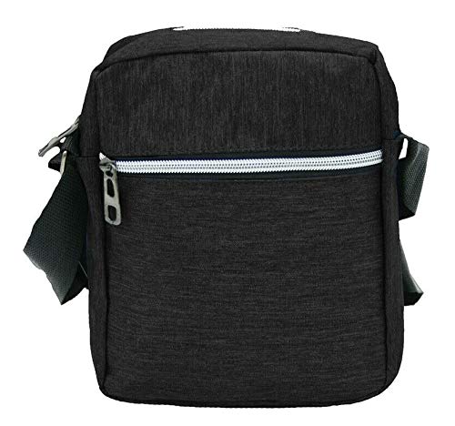 COVERI WORLD Borsello Uomo con Tracolla Tela Cerniera Zip Multi tasche Porta Cellulare Lavoro Sport Tempo Libero Blu Nero Grigio (Nero)