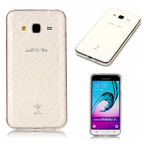 CoverSamsung Galaxy J3 2016, E-lushSamsung Galaxy J3 2016 Cover Nuovo Fiore Flessibile Trasparente Gel TPU Silicone Ultra Sottile Non è Facile Sbiadito Prevenire Graffiante Fiore White Palace Ting Leisi