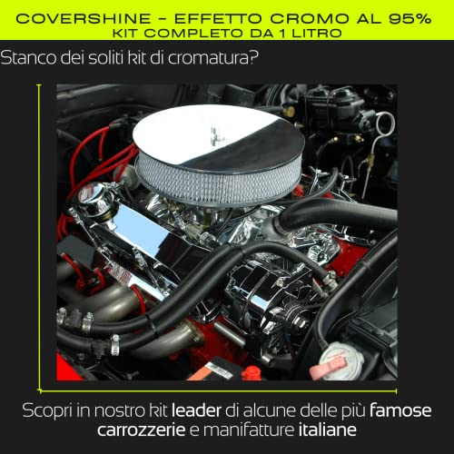 Covershine Vernice Cromata Effetto al 95% per Tutte Le Superfici, Rapida Asciugatura. Spray per cromature Brillanti, Kit Completo con Base, Fondo Nero, Trasparente AntiGraffio. 1 lt